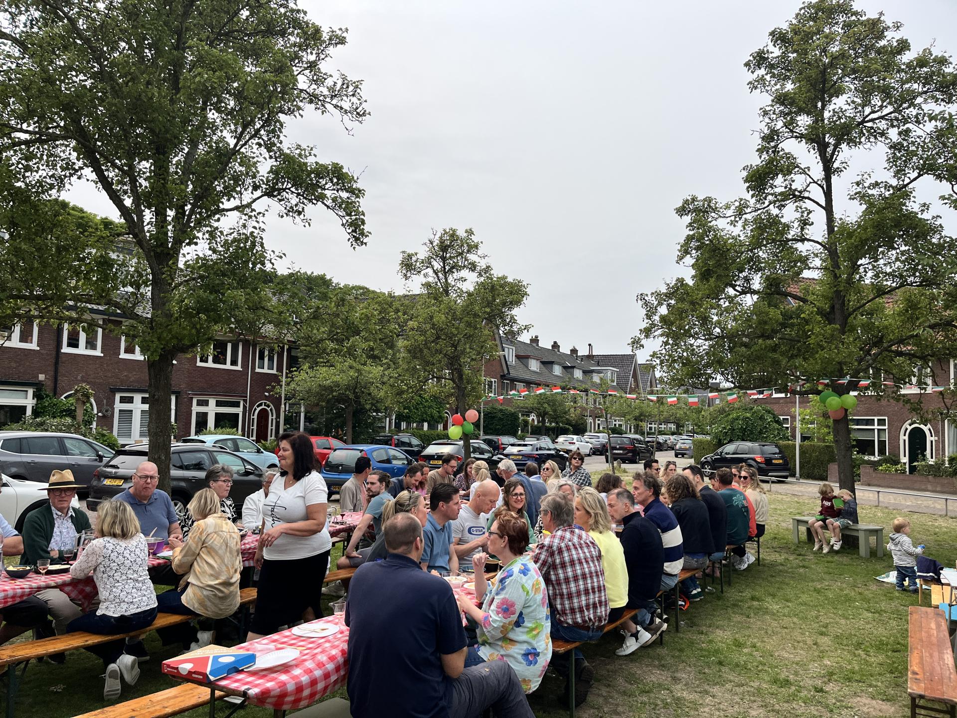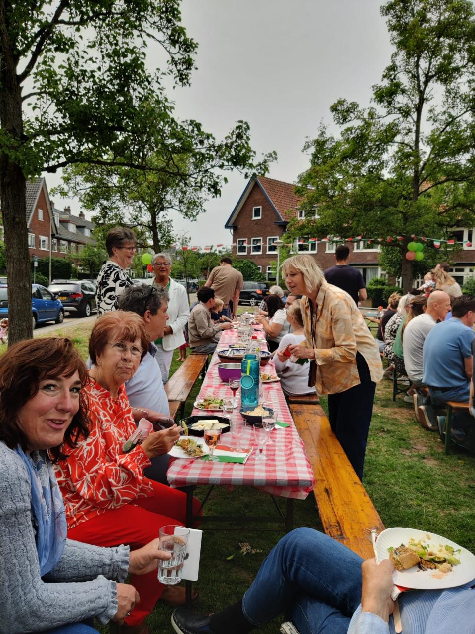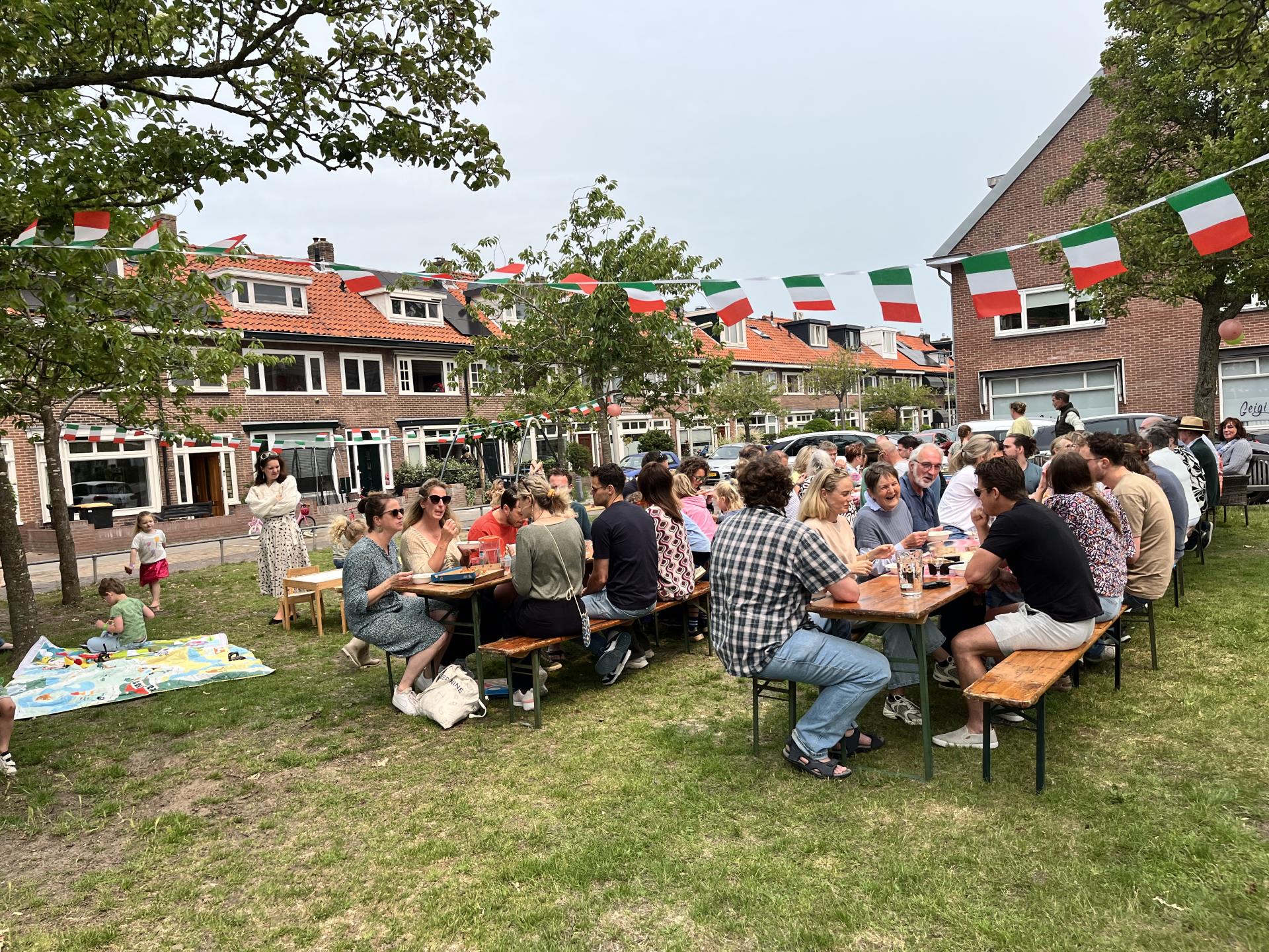 Op 1 juni was het zo ver. Dankzij de inzet van Robert en Cindy en met de hulp van Anja, Michael, Evelien, Christienne en Patricia waren alle voorbereidingen voor de italiaanse lunch tot in de nopjes verzorgd. Het weer was even spannend, de hele week had het geregend, op de dag zelf was het prachtig weer. Vele handen maakte licht werk, vele buurtgenoten hebben geholpen met de op en afbouw.