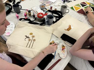 Van het Samen Velsen budget hebben wij mooie materialen kunnen kopen. Ontzettend blij mee, want daardoor kunnen we voor een lage toegangsprijs hele mooie spullen kopen. Zo hebben we tijdens de afgelopen gezellige crea avonden geborduurd (onder deskundige begeleiding van Corrina), tassen en etuis beschilderd, sieradendoosjes versierd, kunstwerken met modelleerpasta gemaakt, boekenleggers met aquarelverf beschilderd. We hebben daarnaast nog veel leuke crea ideeën op de planning staan.