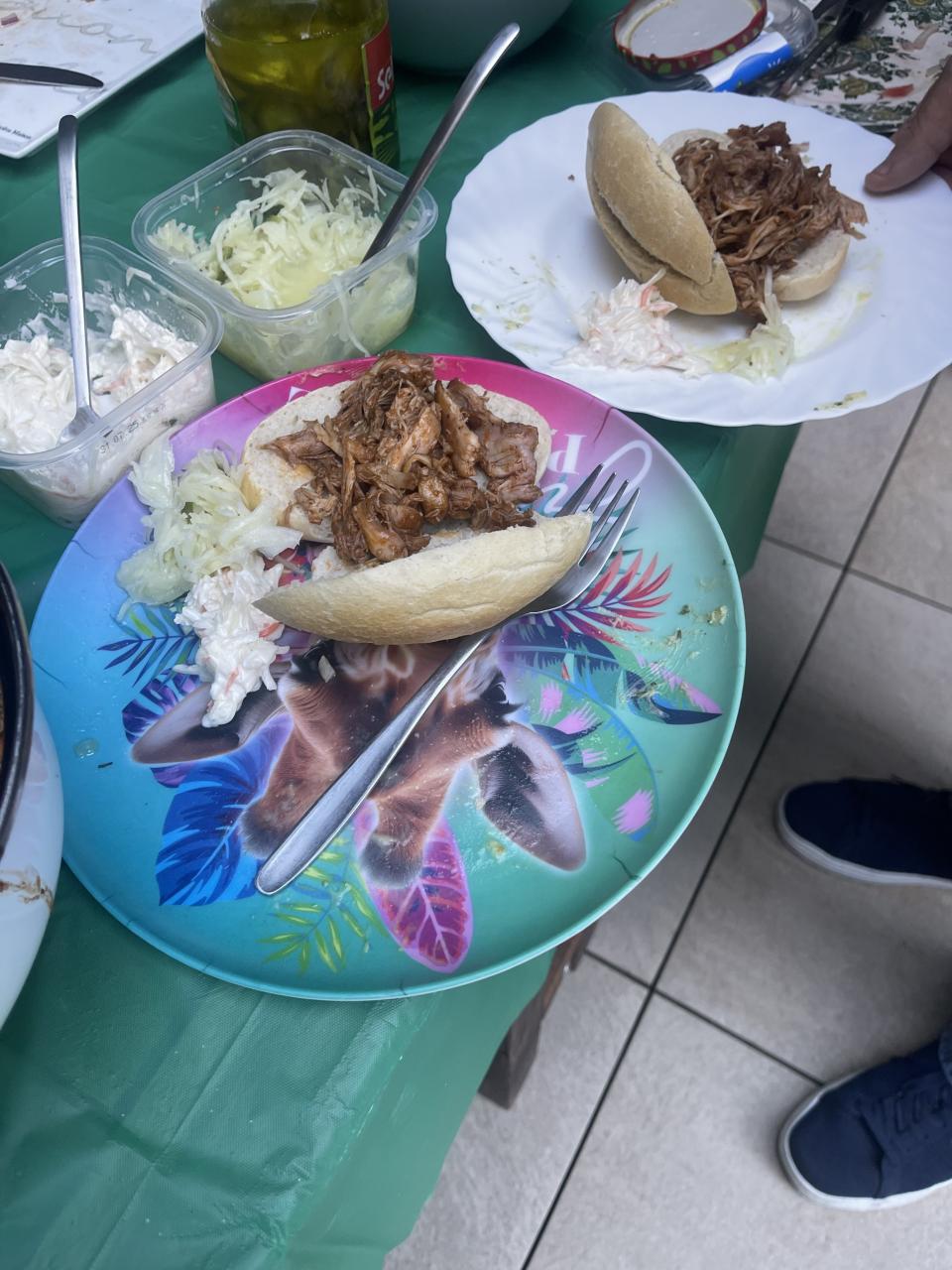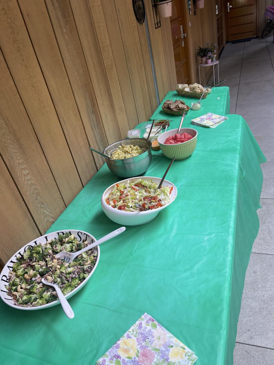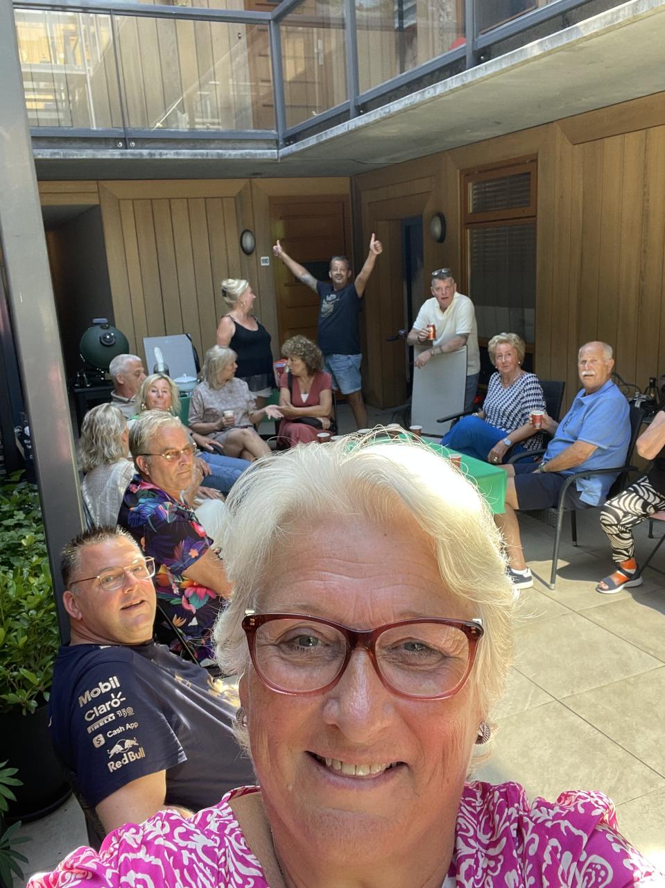 Alle punten werden opgeschreven en er waren prijsjes geregeld voor de eerste-, tweede-, derde prijs. Ook was er een troostprijs. We hebben vreselijk gelachen met de spelletjes want lederen wilde natuurlijk wel wat winnen. Daarna lekker nog even geborreld en daarna lekker van de salades en overheerlijke BBQ-vlees genoten. Er was een muziekje bij en we hebben luidkeels meegezongen. We hadden prachtig mooi weer, dat maakt ook alles goed.