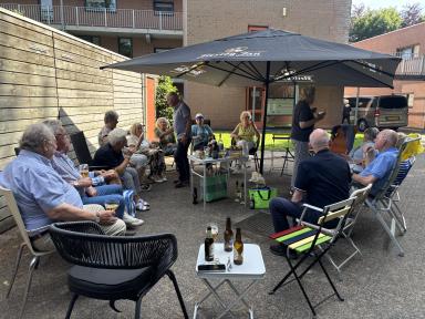 En dat was natuurlijk een mooie gelegenheid een toost uit te brengen op het slagen van de actie en de bewoners van het Mellonahof te bedanken voor de massale deelname en gulle giften. Tijdens de borrel zijn nieuwe initiatieven voor het volgend jaar al weer besproken wij hopen dan ook dat er volgend jaar vanuit de Gemeente Velsen weer een Samen Velsen komt.