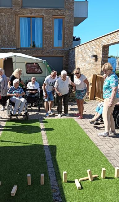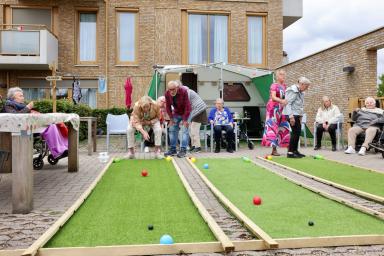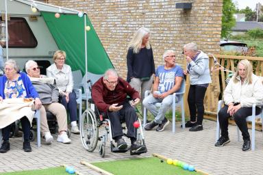 Bij het jeu des boules toernooi was sprake van groot fanatisme bij sommige bewoners. De een gooide wat beter dan de ander, soms belandde een bal buiten het speelveld, maar de los was er niet minder om. "Ik ga stiekem oefenen" zei een van de bewoners op de vraag of we het nog een keer moesten spelen. Dat zegt genoeg. Na afloop was er voor de nummers 1,2 en 3 een medaille en de nummers 4 kregen een beschermengeltje. Ook dit was ooit.