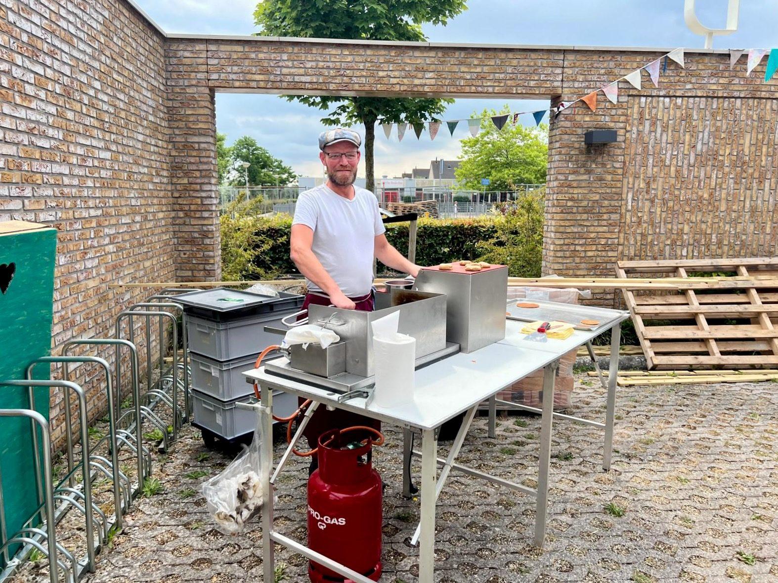 Tot slot was daar visroker Jeffrey. Hij kwam met zalm en paling. Ook hier weer een heel mooi gebaar; de zalm was voor zijn rekening. Jeff had spelletjes meegenomen waar ook weer lekker aan mee gedaan werd. En het valt te raden...ook hier werd gretig van gegeten.