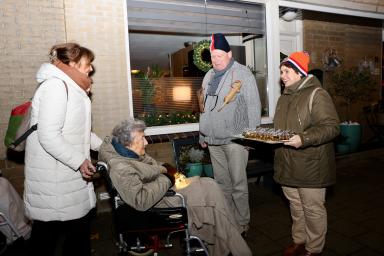 22 december brak aan en er werd genoten van tomatensoep en broodjes warm vlees, bereid door Bart Vlaanderen en zijn vrouw. De vrijwilligers (ook wethouder Korf wilde graag komen helpen) en familieleden verzamelden hiervoor in de tuin bij de brandende vuurkorf, de bewoners aten op hun eigen afdeling.