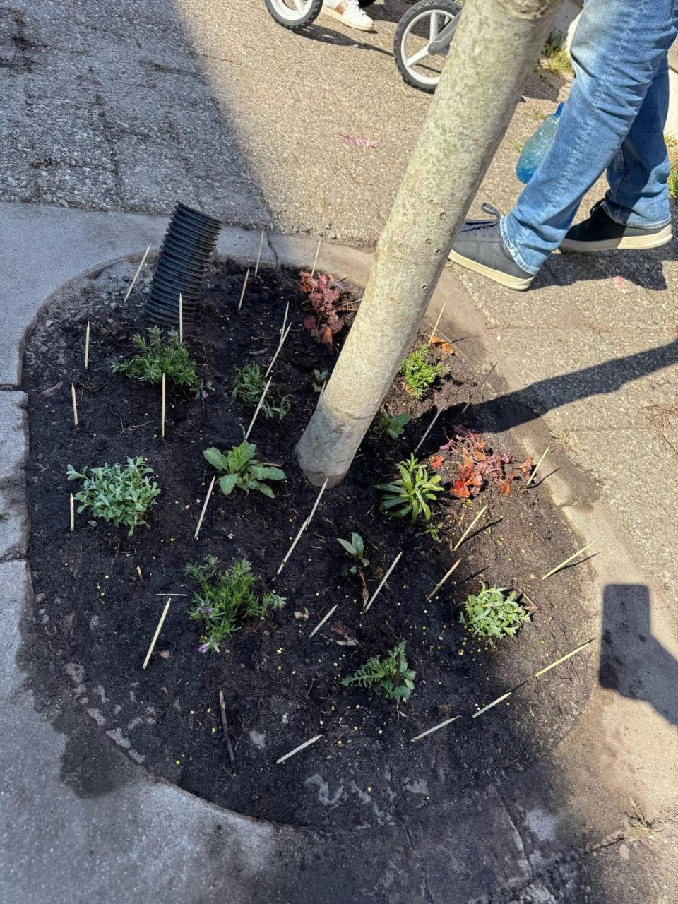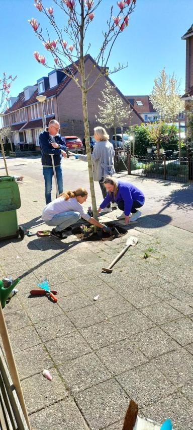 Op zaterdag 6 april hebben wij met de straat de boomspiegels opgeknapt. Onkruid weggehaald en plantjes ervoor in de plaats. De buren houden nu zelf de boomspiegels bij.