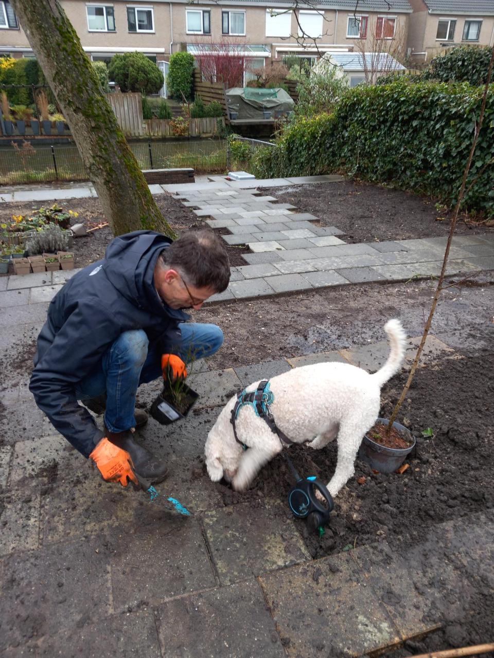 Een drukke tijd met veel ontmoetingen met enthousiaste mensen. Zoals Pim, een collega van Manon, die het ontwerp van de buurttuin maakte en veel van de grotere bomen, struiken en planten leverde. En Yvette, de wijkverbindster van de gemeente, die ervoor zorgde dat het plein gebruiksklaar werd gemaakt door groenbedrijf De Bie het zware grondwerk te laten doen.