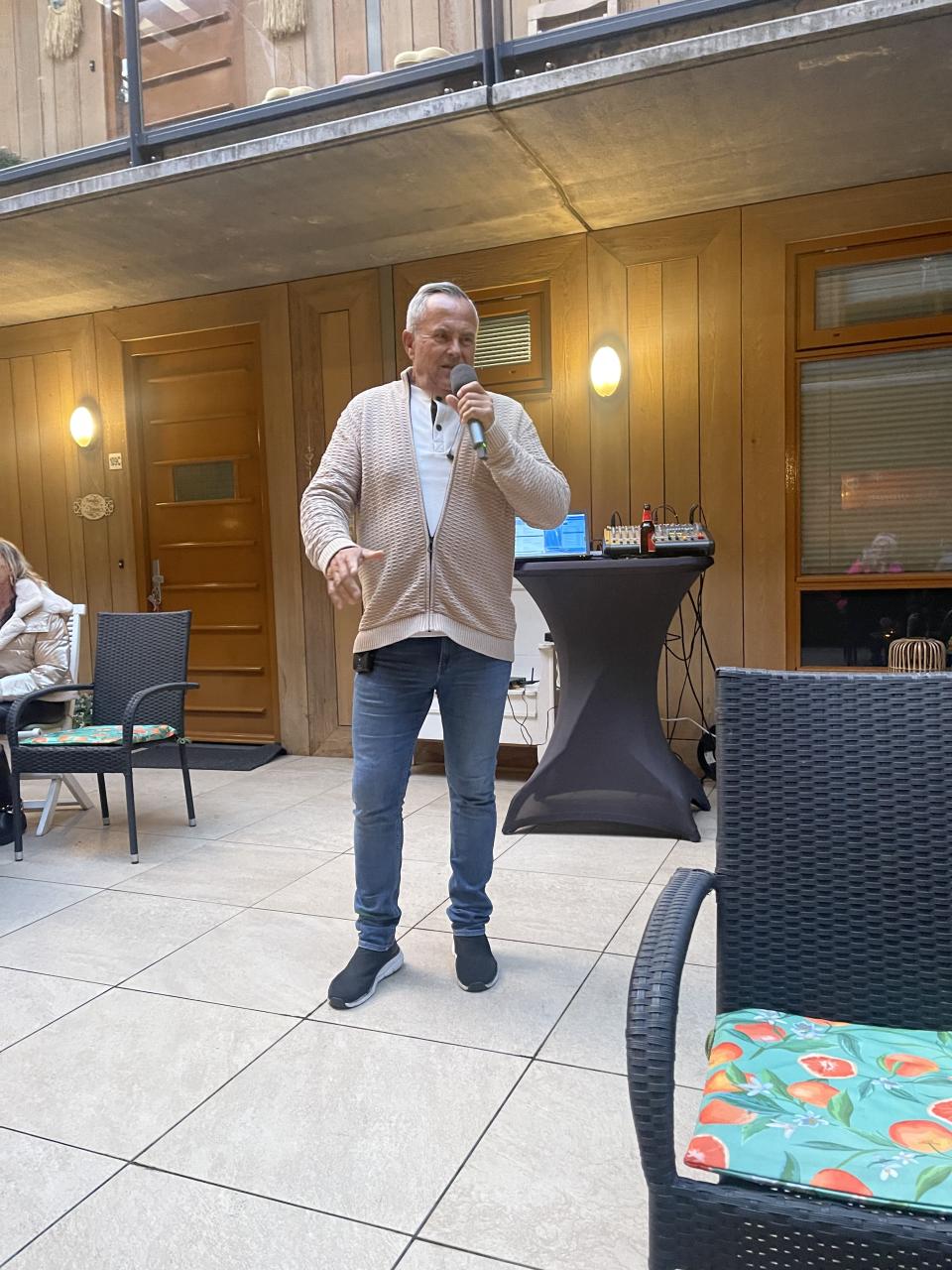 We beginnen rond half 4 met koffie en zelfgemaakte appelcake die gemaakt was door een buurvrouw. Gezellig met elkaar kletsen en ook de nieuwe bewoners welkom heten. Tijdens het koffiemoment kwam Cock Zwanenburg zingen. Echt heel gezellig. En uiteraard begint ook de BBQ die werd verzorgd door een neef van een bewoner die zijn Green Egg hier naar toe heeft gereden. Echt klasse allemaal. Zo regel je met zijn allen een geweldige dag met elkaar.