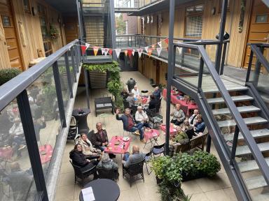 Wij hebben afgelopen zondag met de buren uit ons complex “de Verzetsheld” aan de Wijk aan Zeeërweg een BBQ gedaan. Het was een zeer geslaagde middag/ avond. De binnenplaats hebben we gezellig aangekleed met leuke tafeltjes, stoelen en de Burendag versiering die we ook hadden aangevraagd bij het Oranjefonds.